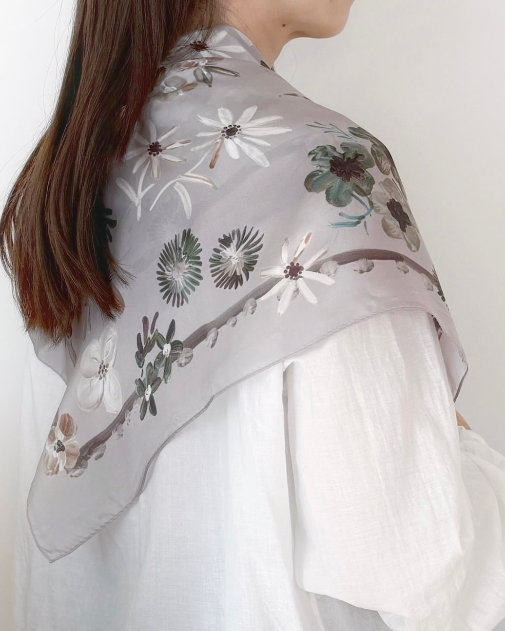 日本製のシルク(絹)100 %の大判スカーフです。